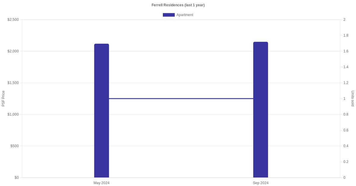 There were a total of 7 sales transactions for Ferrell Residences in the last 3 years, with the latest one recorded in Mar 2025. Disclaimer : our transactions data below does not include block numbers as the data is not available.