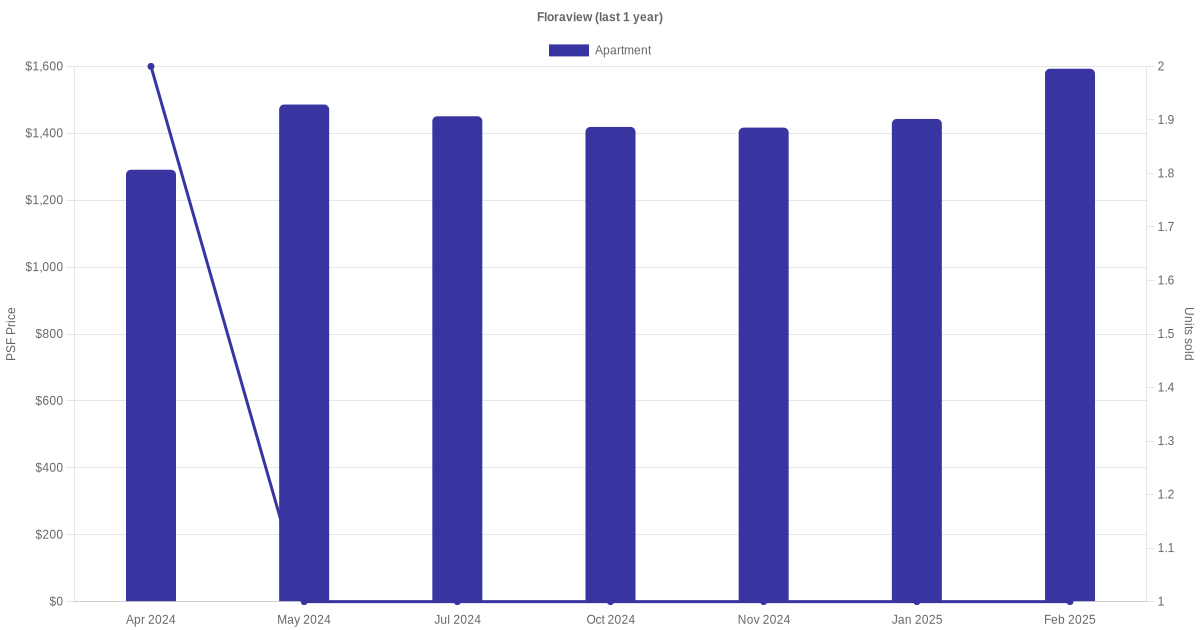 There were a total of 15 sales transactions for Floraview in the last 3 years, with the latest one recorded in Dec 2025. Disclaimer : our transactions data below does not include block numbers as the data is not available.