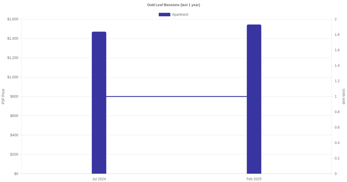 There were a total of 4 sales transactions for Gold Leaf Mansions in the last 3 years, with the latest one recorded in Feb 2025. Disclaimer : our transactions data below does not include block numbers as the data is not available.