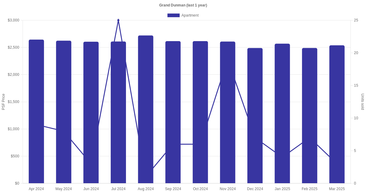 There were a total of 886 sales transactions for Grand Dunman in the last 3 years, with the latest one recorded in Jan 2026. Disclaimer : our transactions data below does not include block numbers as the data is not available. If you would like to see a list of blocks / addresses associated with Grand Dunman, please click here.