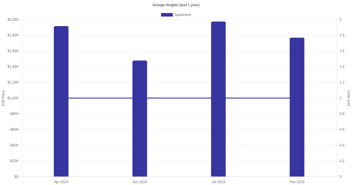There were a total of 12 sales transactions for Grange Heights in the last 3 years, with the latest one recorded in Nov 2025. Disclaimer : our transactions data below does not include block numbers as the data is not available.