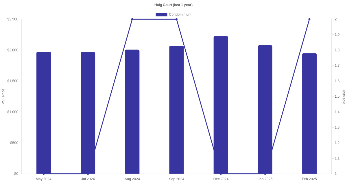 There were a total of 27 sales transactions for Haig Court in the last 3 years, with the latest one recorded in Dec 2025. Disclaimer : our transactions data below does not include block numbers as the data is not available.