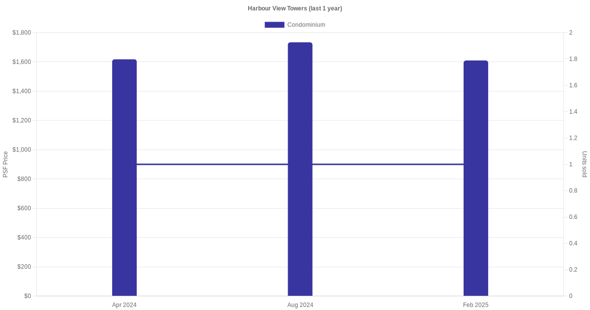 There were a total of 5 sales transactions for Harbour View Towers in the last 3 years, with the latest one recorded in Sep 2025. Disclaimer : our transactions data below does not include block numbers as the data is not available.