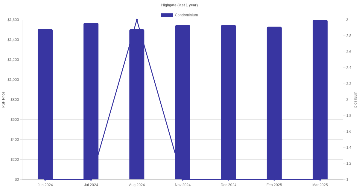 The graph below shows the average monthly transacted sale price for each of the condominium units for Highgate in the last 3 years. This is based on the transactional data collated for Highgate for the selected period.