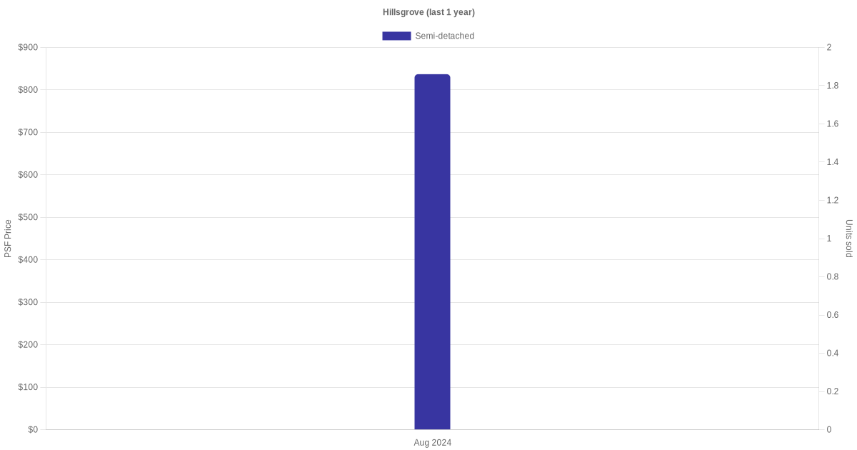 The graph below shows the average monthly transacted sale price for each of the semi-detached units for Hillsgrove in the last 3 years. This is based on the transactional data collated for Hillsgrove for the selected period.