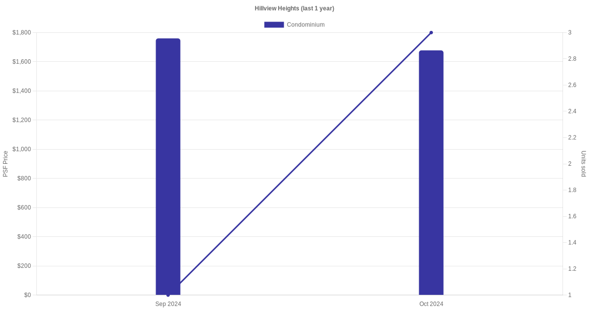The graph below shows the average monthly transacted sale price for each of the condominium units for Hillview Heights in the last 3 years. This is based on the transactional data collated for Hillview Heights for the selected period.