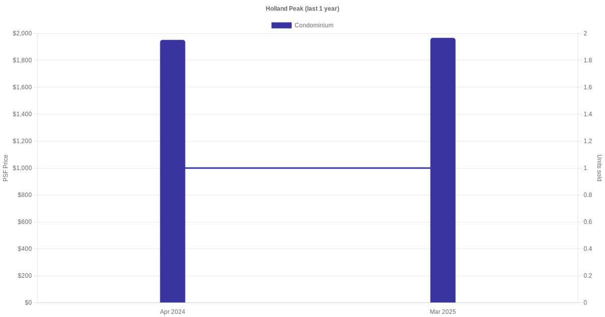 There were a total of 9 sales transactions for Holland Peak in the last 3 years, with the latest one recorded in Sep 2025. Disclaimer : our transactions data below does not include block numbers as the data is not available.