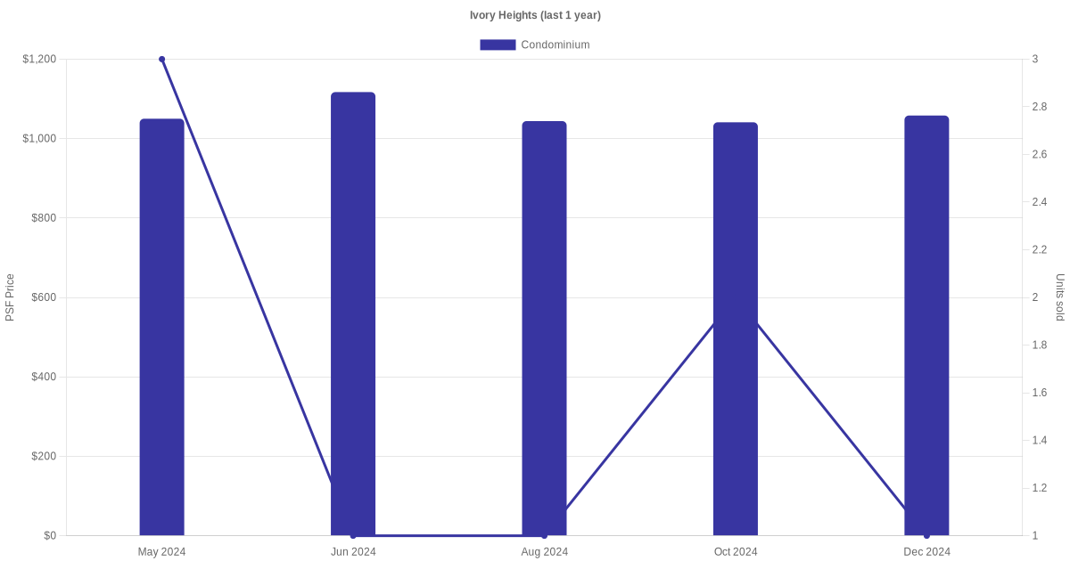 The graph below shows the average monthly transacted sale price for each of the condominium units for Ivory Heights in the last 3 years. This is based on the transactional data collated for Ivory Heights for the selected period.