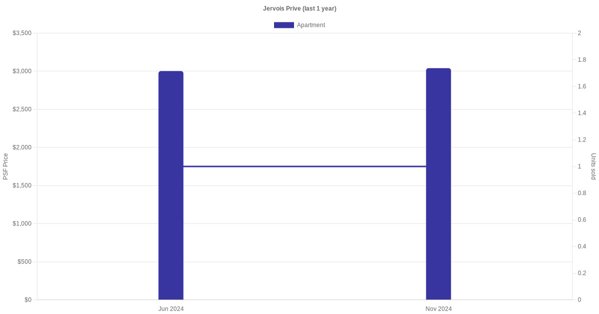There were a total of 15 sales transactions for Jervois Prive in the last 3 years, with the latest one recorded in Apr 2025. Disclaimer : our transactions data below does not include block numbers as the data is not available.