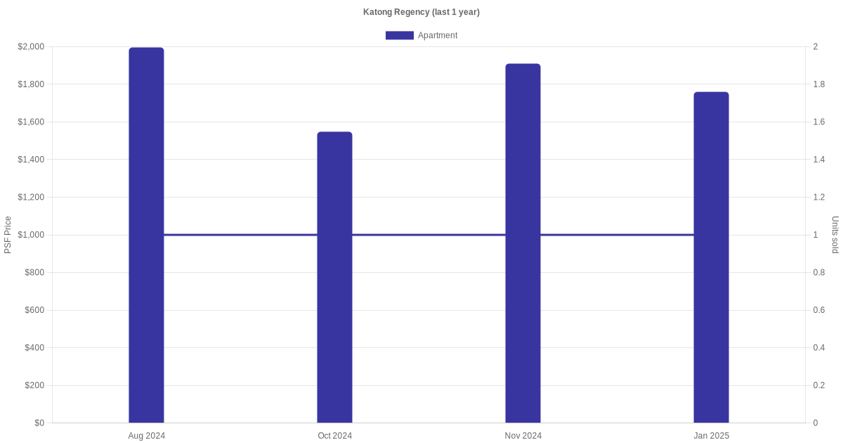 There were a total of 19 sales transactions for Katong Regency in the last 3 years, with the latest one recorded in Nov 2025. Disclaimer : our transactions data below does not include block numbers as the data is not available.