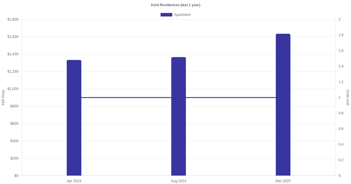There were a total of 4 sales transactions for Kent Residences in the last 3 years, with the latest one recorded in May 2025. Disclaimer : our transactions data below does not include block numbers as the data is not available.