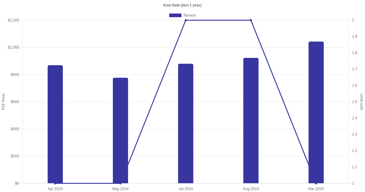There were a total of 9 sales transactions for Kew Gate in the last 3 years, with the latest one recorded in Aug 2025. Disclaimer : our transactions data below does not include block numbers as the data is not available.