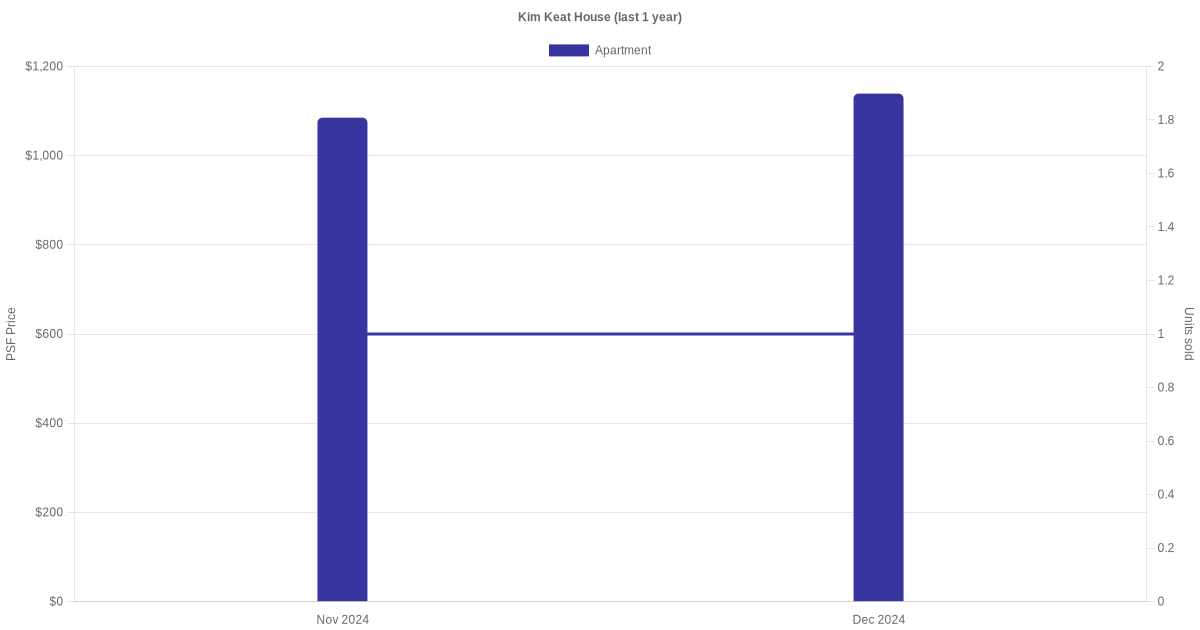 There were a total of 5 sales transactions for Kim Keat House in the last 3 years, with the latest one recorded in Dec 2024. Disclaimer : our transactions data below does not include block numbers as the data is not available.