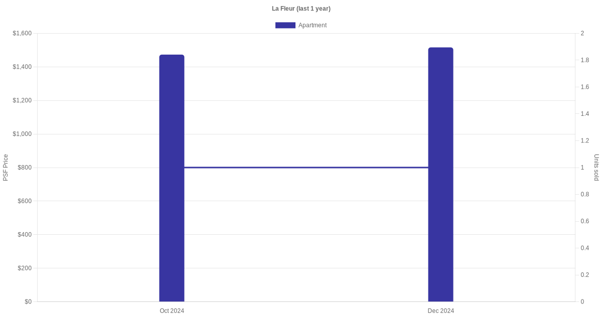 There were a total of 3 sales transactions for La Fleur in the last 3 years, with the latest one recorded in Apr 2025. Disclaimer : our transactions data below does not include block numbers as the data is not available.