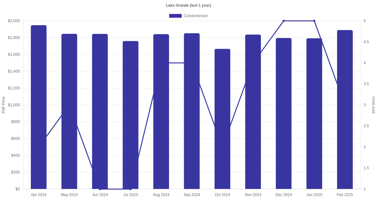 There were a total of 84 sales transactions for Lake Grande in the last 3 years, with the latest one recorded in Dec 2025. Disclaimer : our transactions data below does not include block numbers as the data is not available. If you would like to see a list of blocks / addresses associated with Lake Grande, please click here.