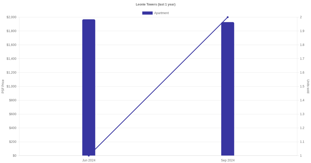 There were a total of 9 sales transactions for Leonie Towers in the last 3 years, with the latest one recorded in Dec 2025. Disclaimer : our transactions data below does not include block numbers as the data is not available.