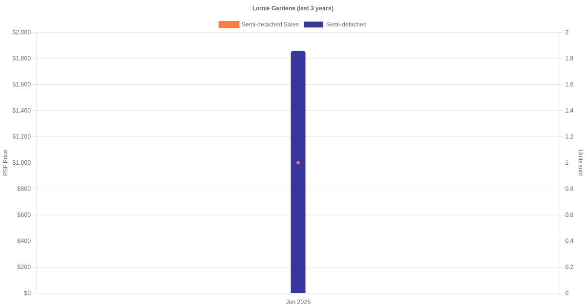 There were a total of 1 sales transactions for Lornie Gardens in the last 3 years, with the latest one recorded in Jun 2025. Disclaimer : our transactions data below does not include block numbers as the data is not available.
