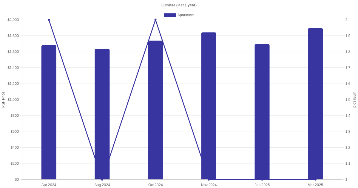 There were a total of 22 sales transactions for Lumiere in the last 3 years, with the latest one recorded in Jul 2025. Disclaimer : our transactions data below does not include block numbers as the data is not available.