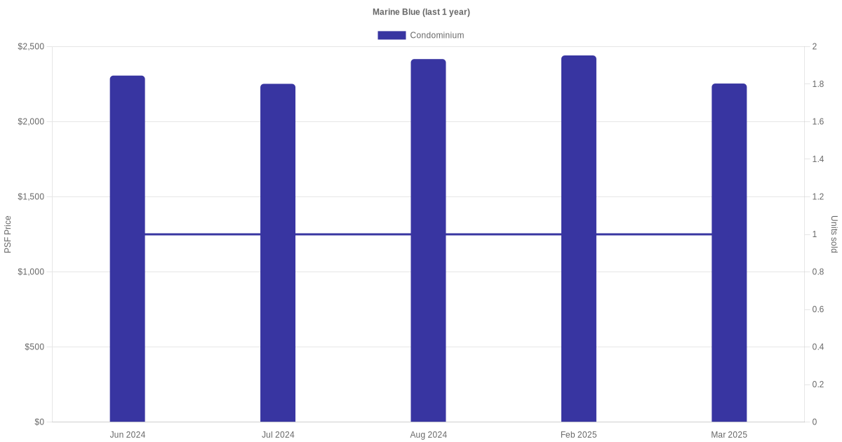 There were a total of 16 sales transactions for Marine Blue in the last 3 years, with the latest one recorded in Oct 2025. Disclaimer : our transactions data below does not include block numbers as the data is not available.