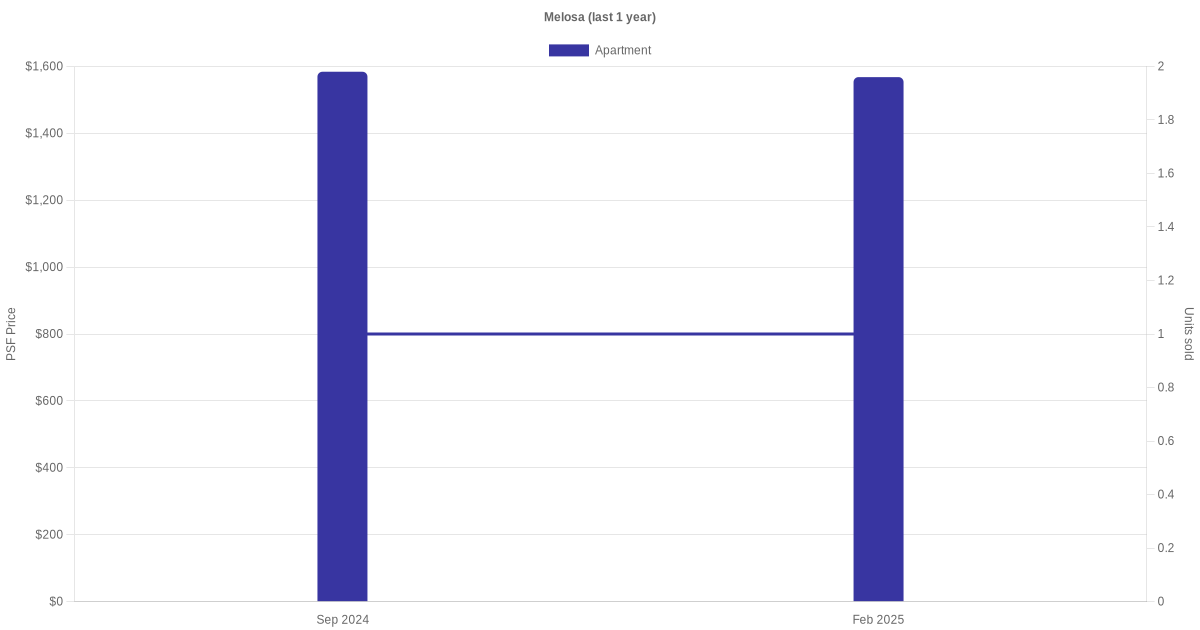 There were a total of 5 sales transactions for Melosa in the last 3 years, with the latest one recorded in Jun 2025. Disclaimer : our transactions data below does not include block numbers as the data is not available.