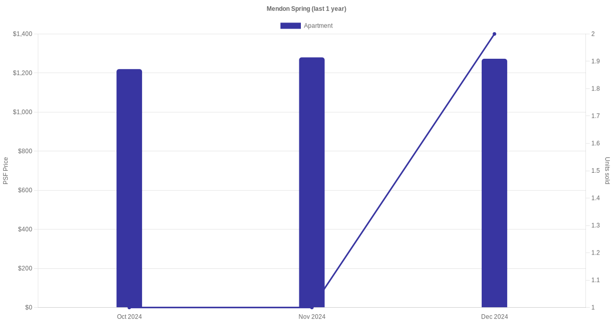 The graph below shows the average monthly transacted sale price for each of the apartment units for Mendon Spring in the last 3 years. This is based on the transactional data collated for Mendon Spring for the selected period.