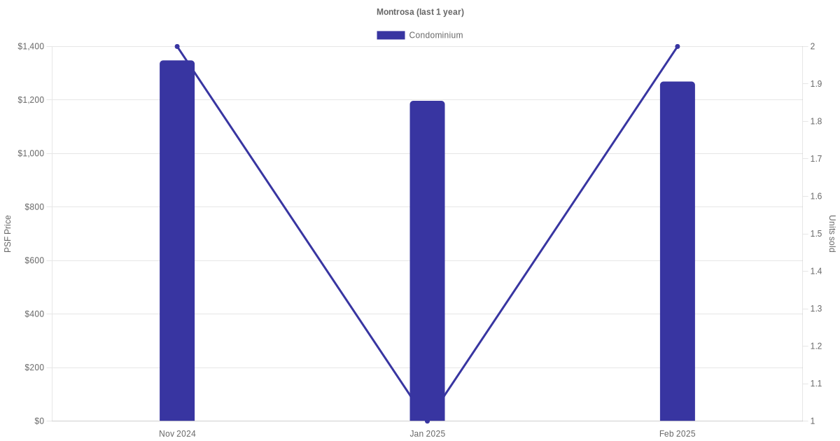 There were a total of 11 sales transactions for Montrosa in the last 3 years, with the latest one recorded in Aug 2025. Disclaimer : our transactions data below does not include block numbers as the data is not available.