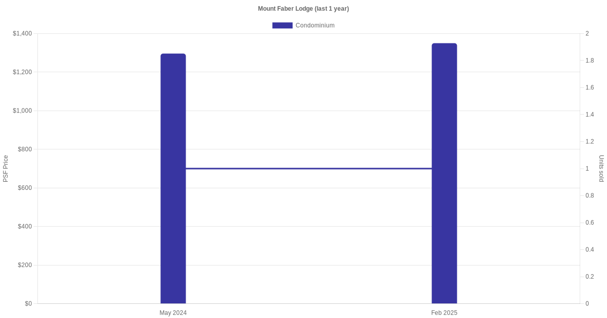 There were a total of 5 sales transactions for Mount Faber Lodge in the last 3 years, with the latest one recorded in Sep 2025. Disclaimer : our transactions data below does not include block numbers as the data is not available.
