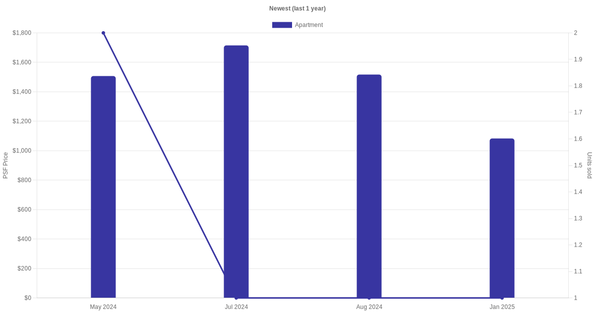 There were a total of 19 sales transactions for Newest in the last 3 years, with the latest one recorded in Oct 2025. Disclaimer : our transactions data below does not include block numbers as the data is not available.