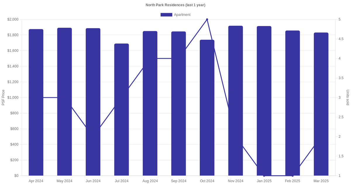 There were a total of 102 sales transactions for North Park Residences in the last 3 years, with the latest one recorded in Dec 2025. Disclaimer : our transactions data below does not include block numbers as the data is not available. If you would like to see a list of blocks / addresses associated with North Park Residences, please click here.