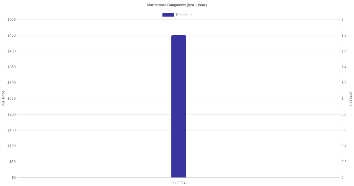 The graph below shows the average monthly transacted sale price for each of the detached units for Northshore Bungalows in the last 3 years. This is based on the transactional data collated for Northshore Bungalows for the selected period.
