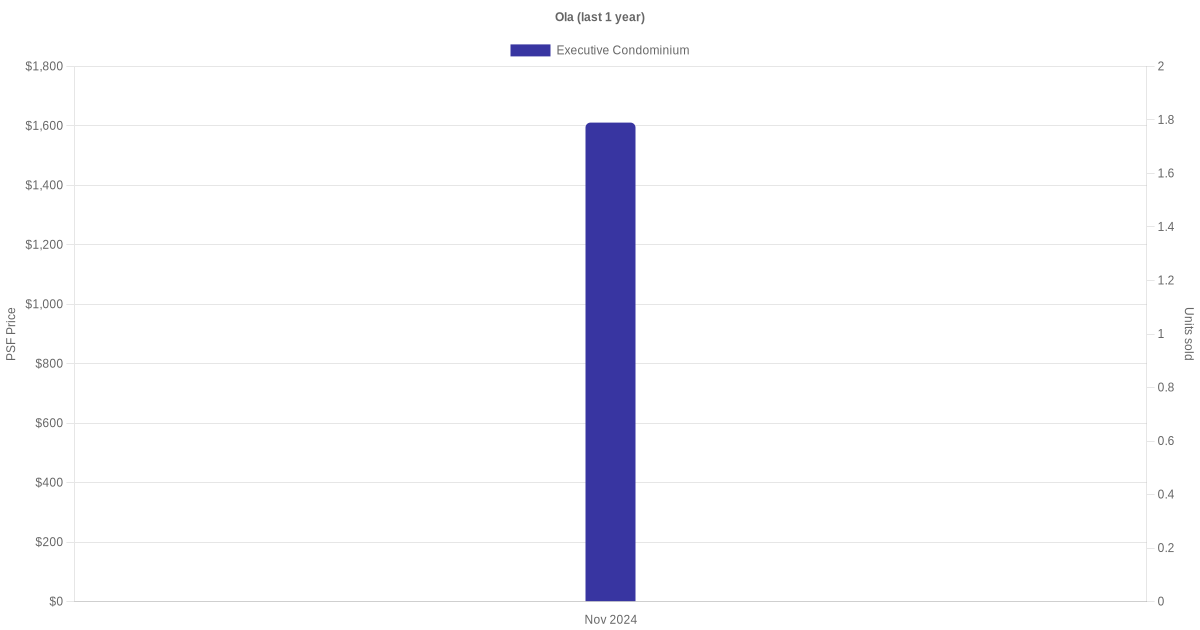 The graph below shows the average monthly transacted sale price for each of the executive condominium units for Ola in the last 3 years. This is based on the transactional data collated for Ola for the selected period.