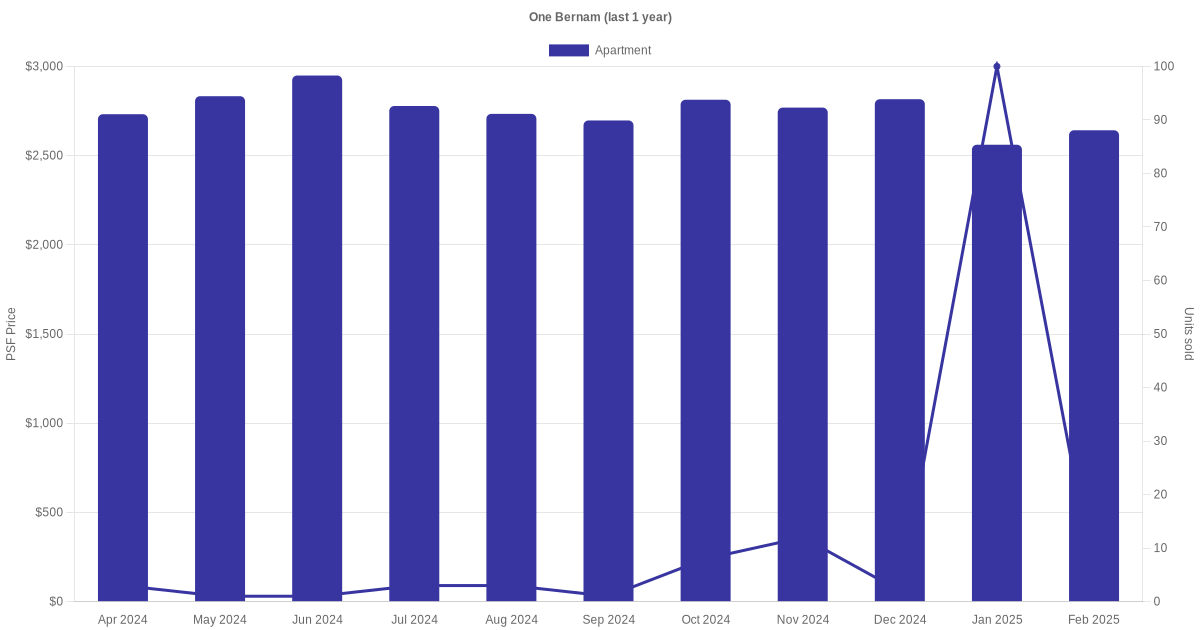 There were a total of 216 sales transactions for One Bernam in the last 3 years, with the latest one recorded in Feb 2025. Disclaimer : our transactions data below does not include block numbers as the data is not available. If you would like to see a list of blocks / addresses associated with One Bernam, please click here.