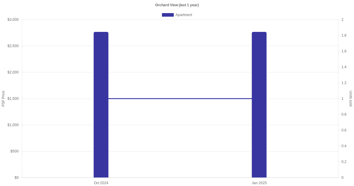 There were a total of 2 sales transactions for Orchard View in the last 3 years, with the latest one recorded in Jan 2025. Disclaimer : our transactions data below does not include block numbers as the data is not available.