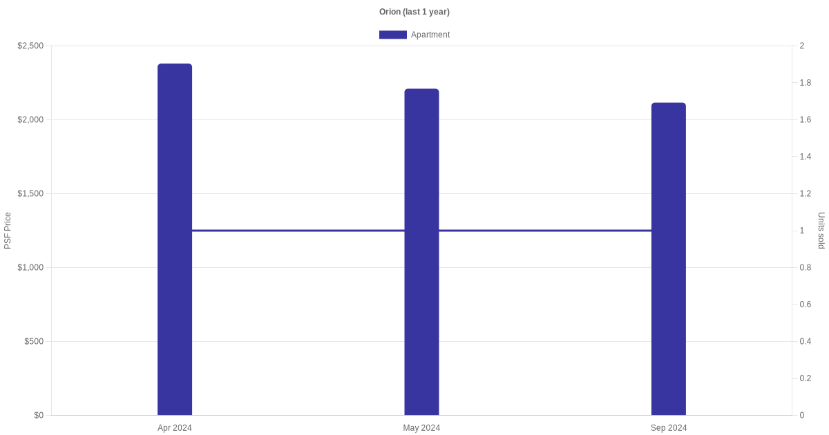 There were a total of 5 sales transactions for Orion in the last 3 years, with the latest one recorded in Sep 2024. Disclaimer : our transactions data below does not include block numbers as the data is not available.