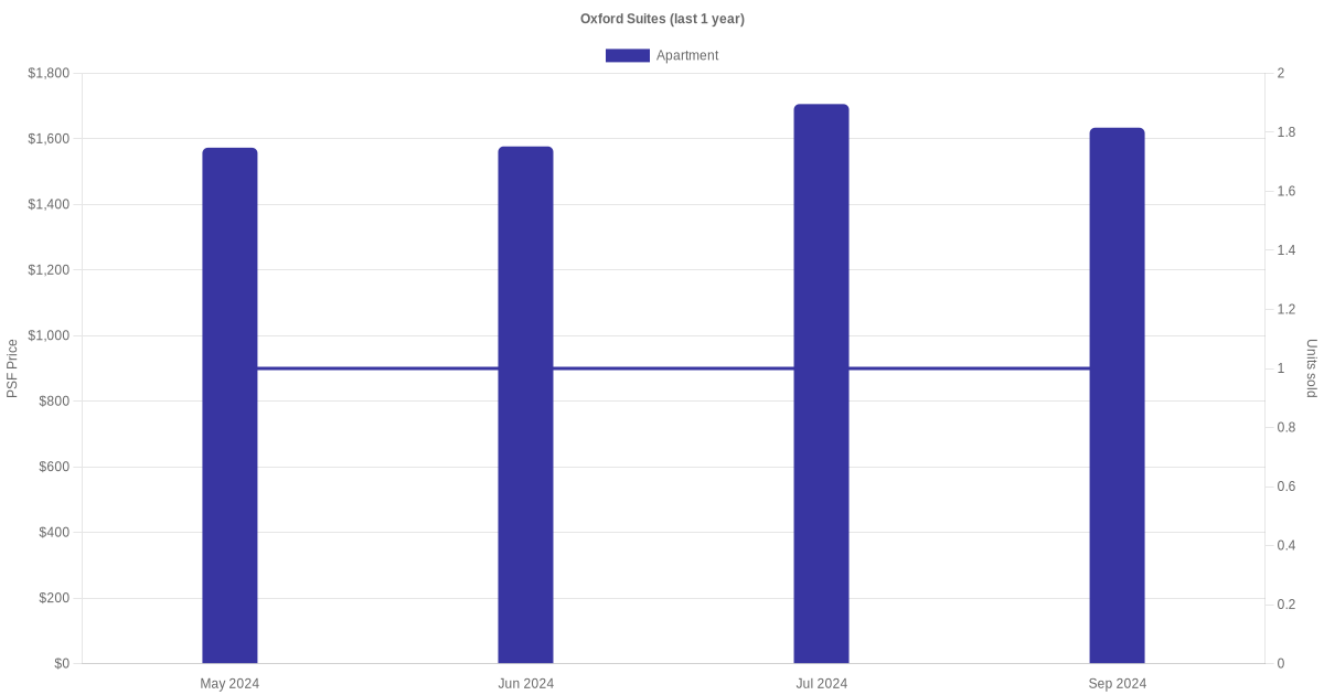 There were a total of 6 sales transactions for Oxford Suites in the last 3 years, with the latest one recorded in May 2025. Disclaimer : our transactions data below does not include block numbers as the data is not available.
