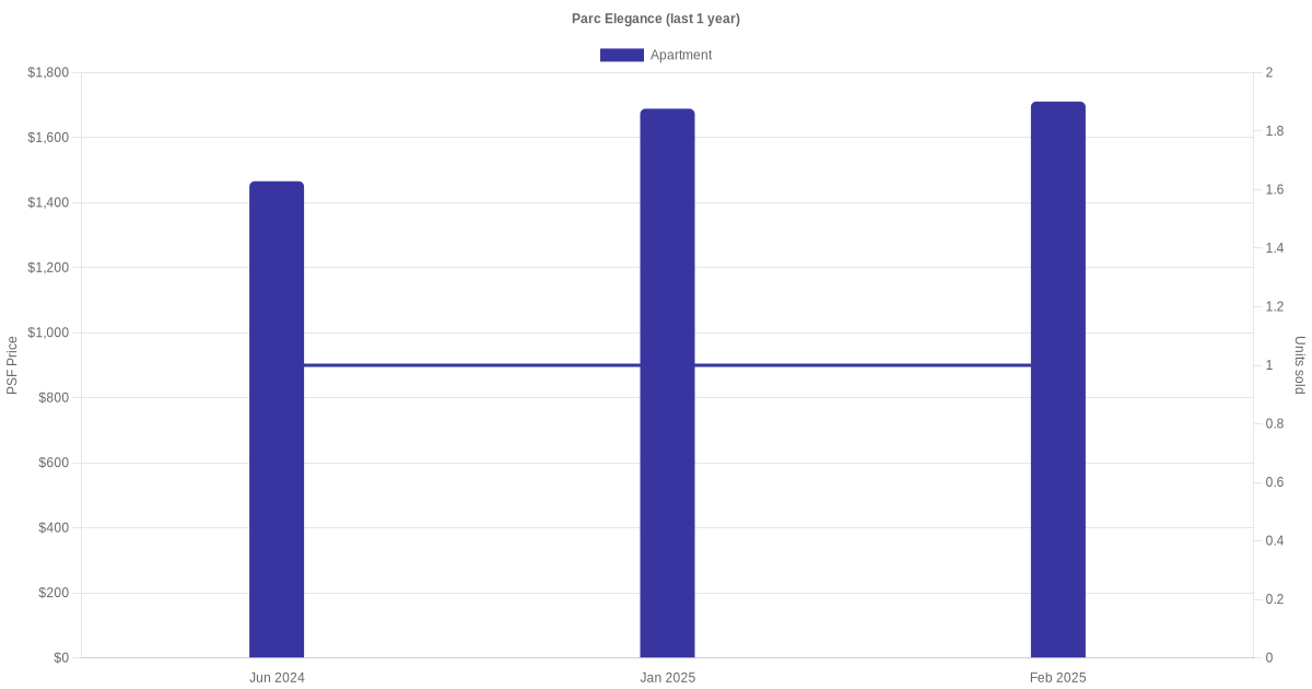 There were a total of 20 sales transactions for Parc Elegance in the last 3 years, with the latest one recorded in Dec 2025. Disclaimer : our transactions data below does not include block numbers as the data is not available.