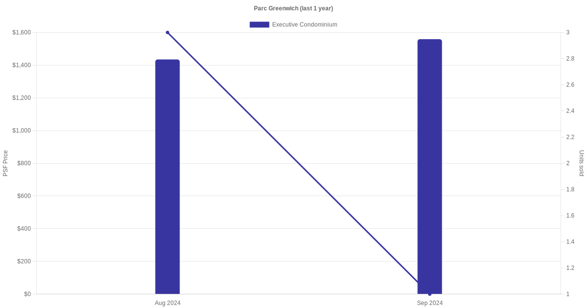 There were a total of 13 sales transactions for Parc Greenwich in the last 3 years, with the latest one recorded in Sep 2024. Disclaimer : our transactions data below does not include block numbers as the data is not available.