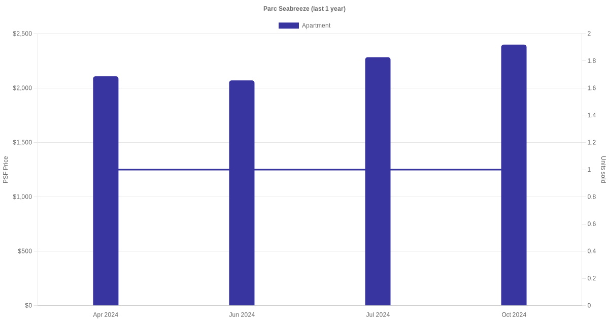 There were a total of 7 sales transactions for Parc Seabreeze in the last 3 years, with the latest one recorded in Oct 2024. Disclaimer : our transactions data below does not include block numbers as the data is not available.