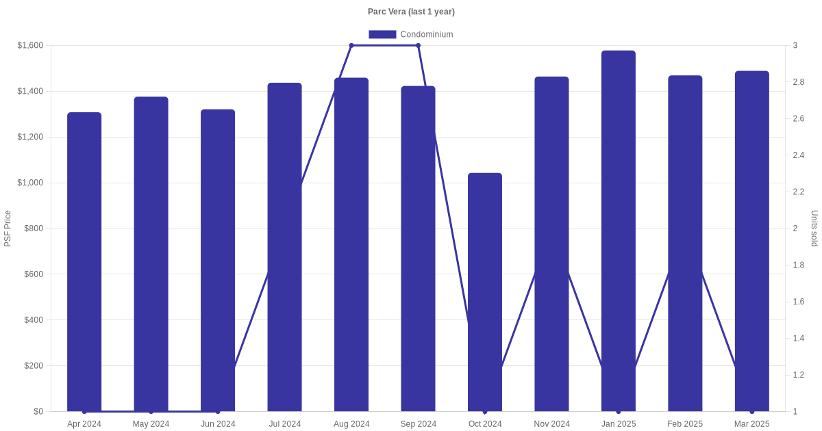There were a total of 46 sales transactions for Parc Vera in the last 3 years, with the latest one recorded in Nov 2025. Disclaimer : our transactions data below does not include block numbers as the data is not available. If you would like to see a list of blocks / addresses associated with Parc Vera, please click here.