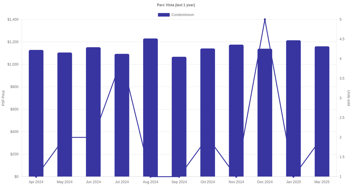 There were a total of 69 sales transactions for Parc Vista in the last 3 years, with the latest one recorded in Dec 2025. Disclaimer : our transactions data below does not include block numbers as the data is not available. If you would like to see a list of blocks / addresses associated with Parc Vista, please click here.