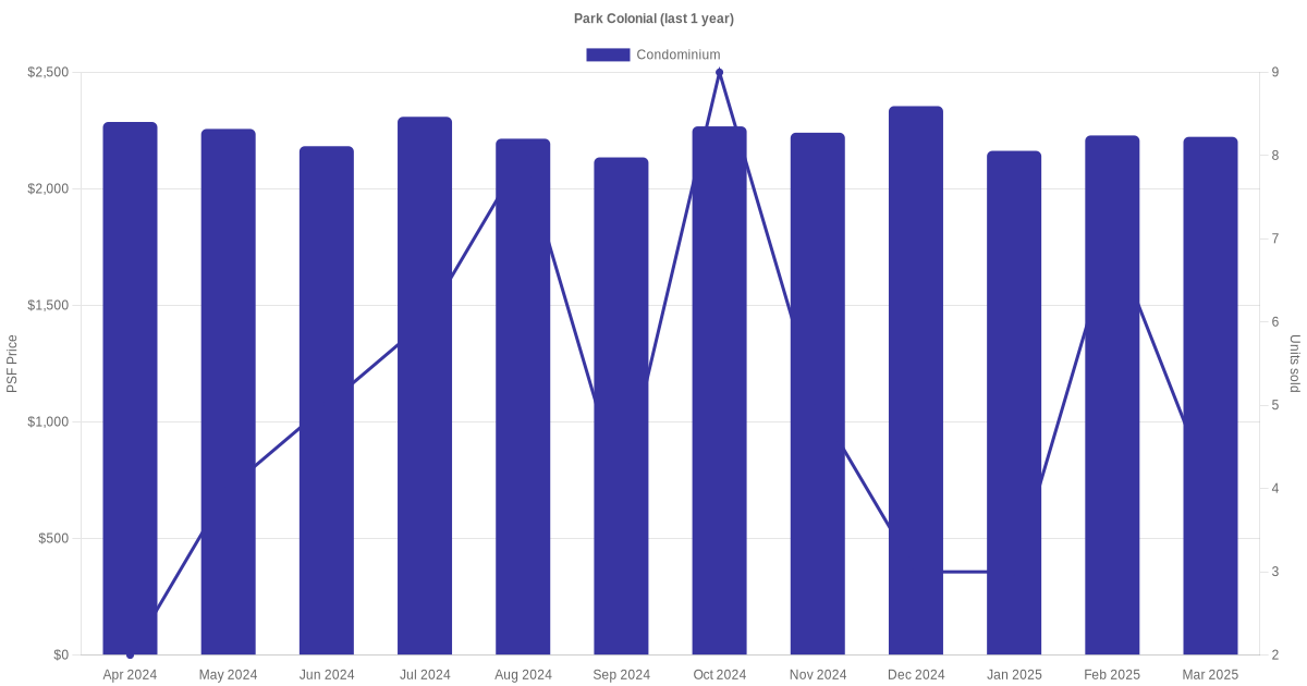 There were a total of 141 sales transactions for Park Colonial in the last 3 years, with the latest one recorded in Dec 2025. Disclaimer : our transactions data below does not include block numbers as the data is not available. If you would like to see a list of blocks / addresses associated with Park Colonial, please click here.