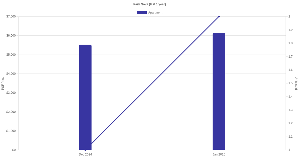 There were a total of 13 sales transactions for Park Nova in the last 3 years, with the latest one recorded in Nov 2025. Disclaimer : our transactions data below does not include block numbers as the data is not available.