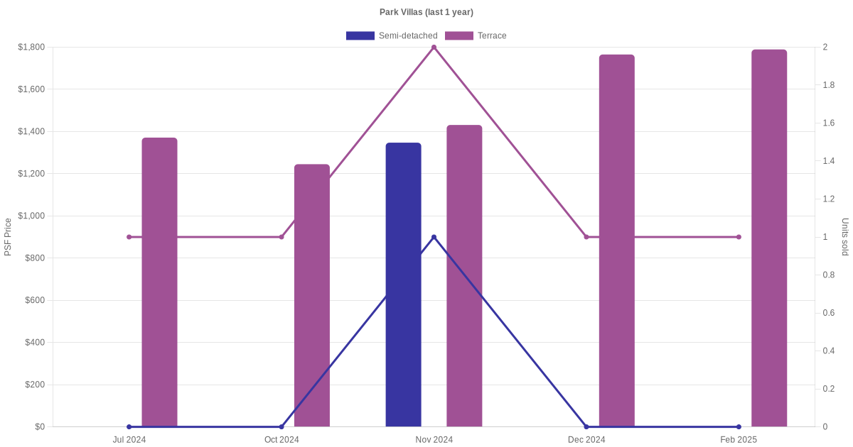 There were a total of 19 sales transactions for Park Villas in the last 3 years, with the latest one recorded in Nov 2025. Disclaimer : our transactions data below does not include block numbers as the data is not available.