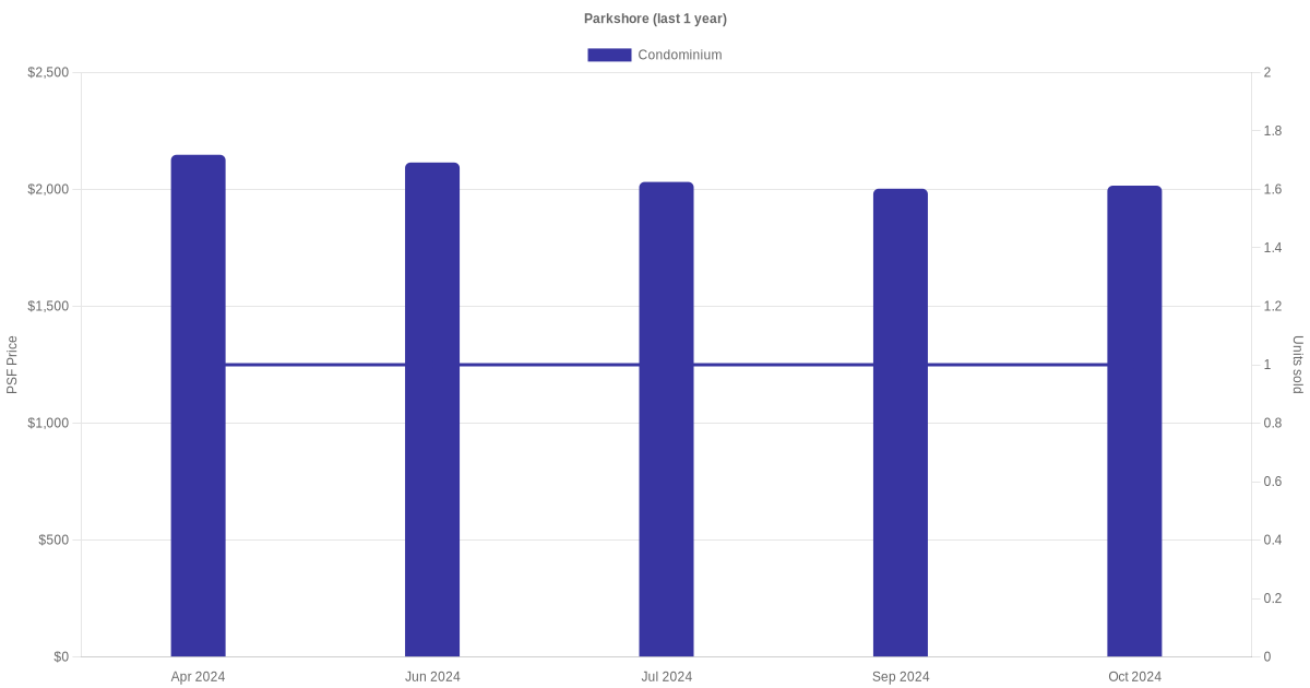 There were a total of 11 sales transactions for Parkshore in the last 3 years, with the latest one recorded in Dec 2025. Disclaimer : our transactions data below does not include block numbers as the data is not available.