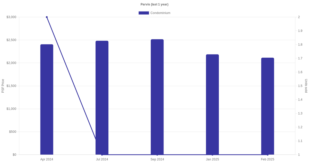 There were a total of 22 sales transactions for Parvis in the last 3 years, with the latest one recorded in Nov 2025. Disclaimer : our transactions data below does not include block numbers as the data is not available.
