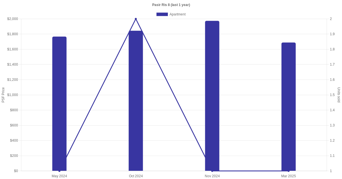 | Oct 2025 | $8,000 | Apartment | Pasir Ris 8 Pasir Ris Drive 8 (District 18) | 4 | 1400-1500 sqft |