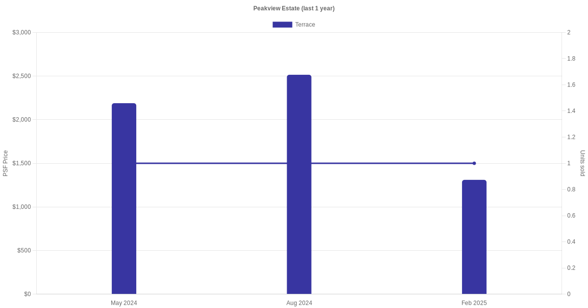 There were a total of 13 sales transactions for Peakview Estate in the last 3 years, with the latest one recorded in Sep 2025. Disclaimer : our transactions data below does not include block numbers as the data is not available.