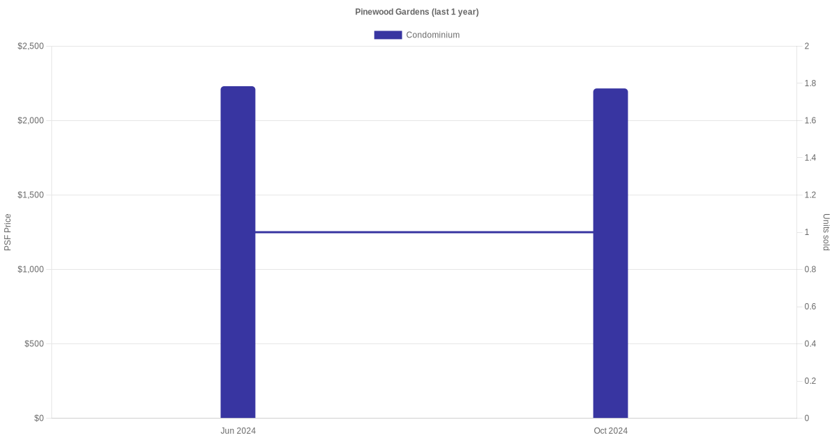 The graph below shows the average monthly transacted sale price for each of the condominium units for Pinewood Gardens in the last 3 years. This is based on the transactional data collated for Pinewood Gardens for the selected period.