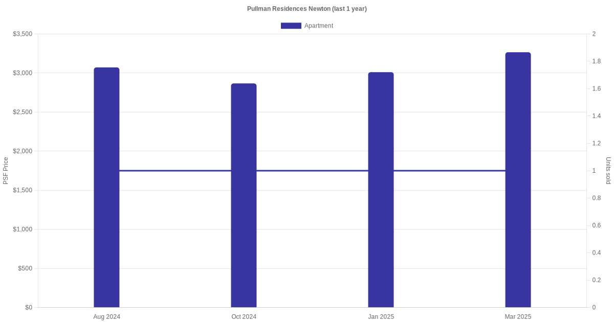 There were a total of 132 sales transactions for Pullman Residences Newton in the last 3 years, with the latest one recorded in Jun 2025. Disclaimer : our transactions data below does not include block numbers as the data is not available. If you would like to see a list of blocks / addresses associated with Pullman Residences Newton, please click here.
