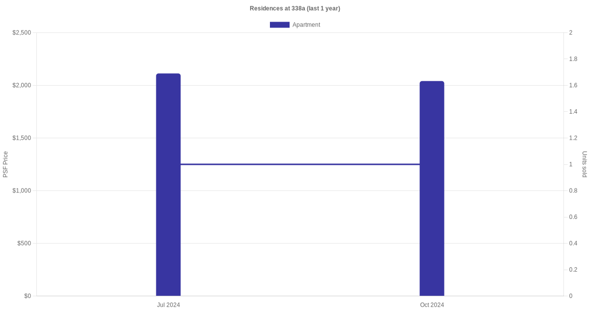 There were a total of 5 sales transactions for Residences at 338a in the last 3 years, with the latest one recorded in Oct 2025. Disclaimer : our transactions data below does not include block numbers as the data is not available.